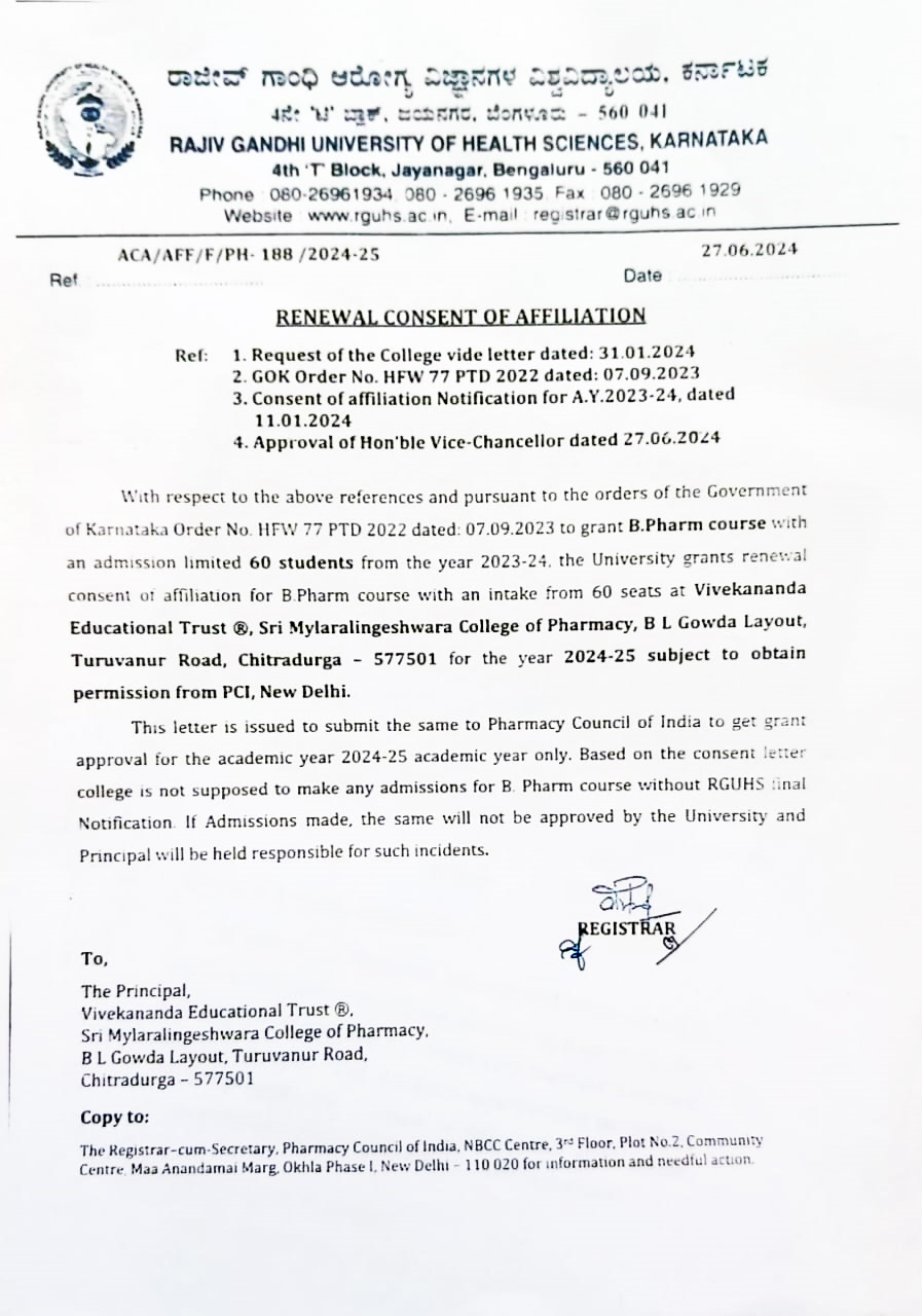 Sri Mylaralingeshwara College of Pharmacy offers a 2-year academic course in Diploma of Pharmacy The College is provided with the latest infrastructure and equipment's and we have put in place highly qualified dedicated teachers so that the best can be offered to our students. Along with the academic pursuits, the College, within the umbrella of SMCP, carries out various extracurricular and cultural activities aimed at total personality development of the students.